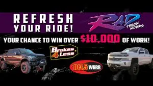 Time to "Refresh your Ride" with 103.5 WGRR! We're hooking you up with $10,000 in accessories installed from RAD Truck Works including window tinting, wheels & tires, rust proofing and all types of protective sprays! Plus, a brake job from Brakes 4 Less, we know brakes better…